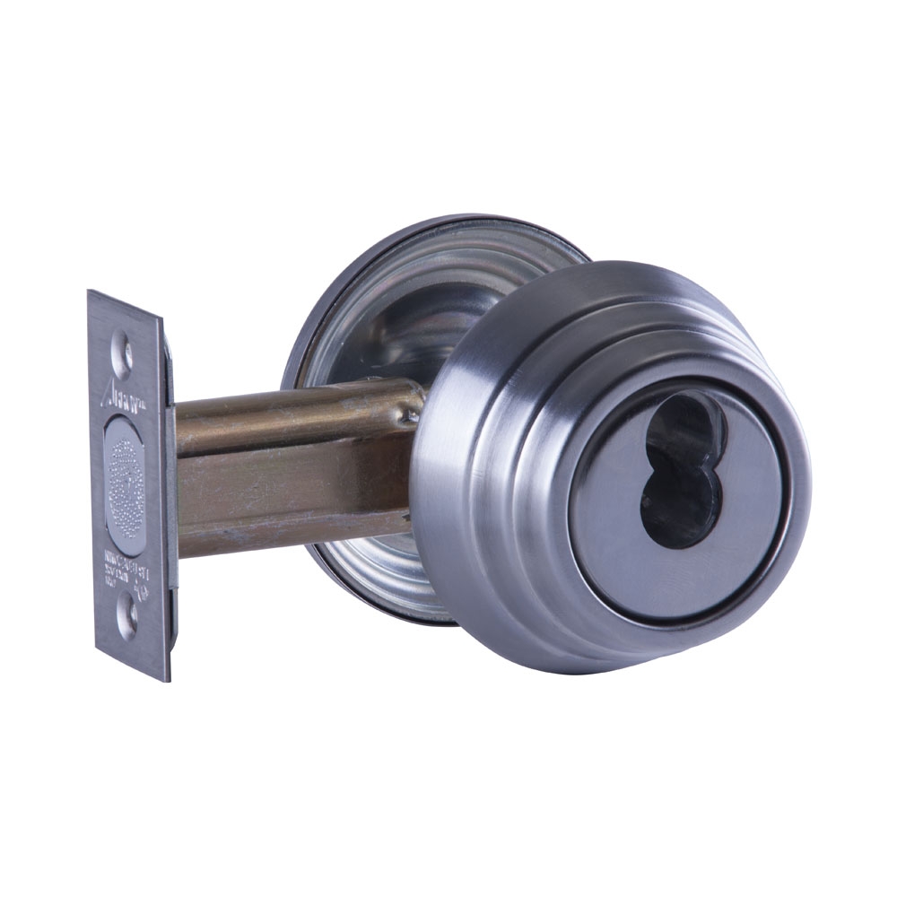 - Steel deadbolt with hardened steel pin insert