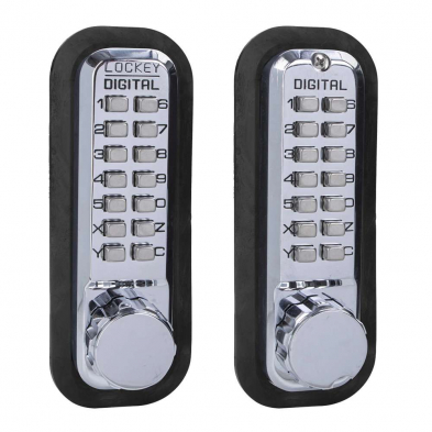 The LockeyUSA 2210 is a mechanical keyless deadbolt, with double combination, and key override, in Bright Chrome (BC) finish. These are the main features: