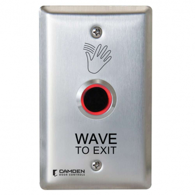 ValueWaveâ„¢ hands free switches are both water resistant and offer a built-in light ring standard ; CM-221 for red/green or CM-222 for blue/green illumination. Camden ValueWaveâ„¢ 12/24 VDC touchless switches with 1 relay are IP 65 rated for indoor/outdoor use, ideal for use in automatic door/access control systems. These switches are designed for easy installation and trouble-free service in high traffic applications. CM-221 are available in single, narrow and double gang stainless steel faceplates and graphics.