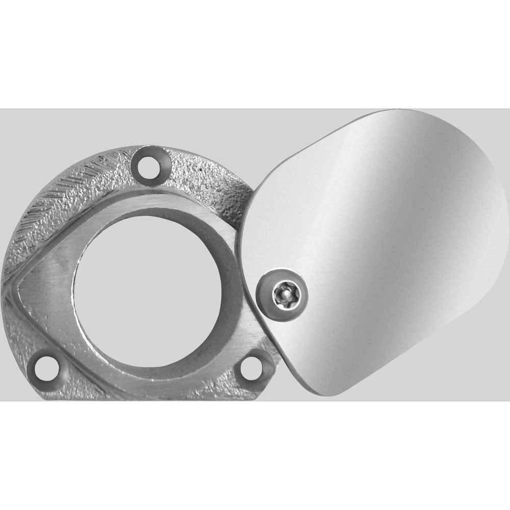 A swinging, protective cover for a lever tumbler lock cylinder. Interchangeable with an escutcheon, the shield has an aluminum spacer and cover. US32D finish.Keeps foreign matter out of the cylinder. Used on exterior doors to keep cold air and dirt from blowing into the cylinder.