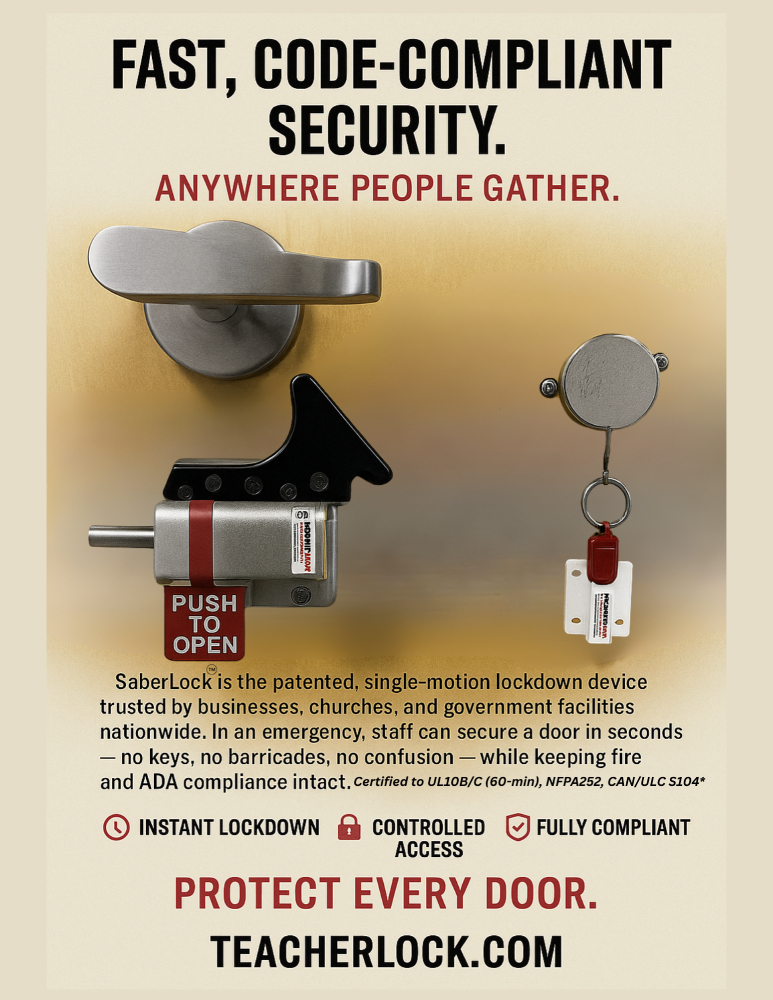SaberLock was designed from the start to keep control of the room in the hands of the authorized person. While active shooter emergencies are rare and dangerous, a person looking to do harm who controls the door is also dangerous.
