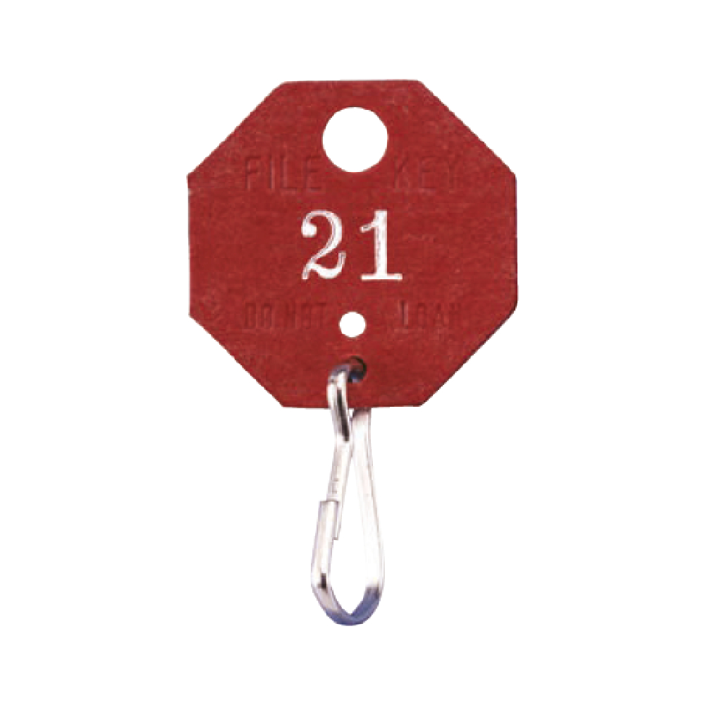 Tags are made of 3/64" vulcanized fiber & are 1 1/8" oval shaped. Numbers are die stamped & run consecutive up to 4 digits. Tags come with a nickel-plated snap on link & are ordered in quantities of 100.Tags come standard in white oval or red octagonal.