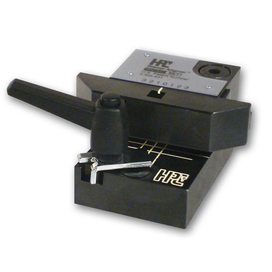 The Stamp Aligner™ solves the problems locksmiths have always had while stamping numbers on keys. Crooked numbers, stamps flying across the room, and numbers that go up, down, and all around are now things of the past. The Stamp Aligner™ holds the stamps so that figures may be stamped on keys in a straight line with even spacing between characters. The Stamp Aligner™ has 7 detents to stamp up to 7 characters and 3 rows evenly on a standard key. A key is placed onto the bottom part of the Stamp Aligner™ and secured in place. The top part of the Stamp Aligner™ is moved into one of the spacing indexes. The stamp is placed into the square hole, over the spot where the key is to be stamped. The stamp is held securely in place for it to be struck by a hammer. Spacing is clearly defined by a spring-loaded detent built into the device. Each character stamped on the key will be straight, spaced evenly, and aligned perfectly. When the stamps are all struck with the same force, the result is a key that looks like it was factory stamped. Letter and Figure Stamps are sold separately.