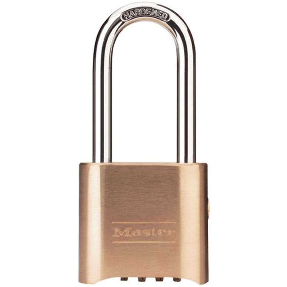 The Master Lock No. 176LH Resettable Combination Padlock features a 2in (51mm) wide solid brass case for strength and weatherability and a 2-1/4in (57mm) tall, 5/16in (8mm) diameter hardened steel shackle for excellent cut resistance. The 4-digit dials allow you to set-your-own combination and reset to restrict/change allowed access – 10,000 combinations available. The key override feature allows supervisory access at any time if needed.