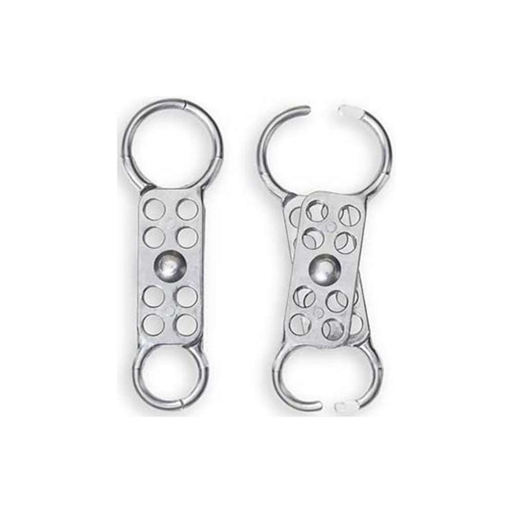 This aluminum rust-resistant hasp made by Master Lock holds up to 8 padlocks and is designed to be used in lockout/tagout systems in compliance with the OSHA 1910.147 standard. The hasp will accept padlocks with shackles up to 3/8" in diameter.