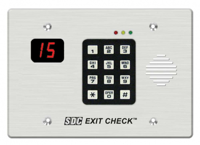 SDC’s 101-DE series delayed egress controller sends power to the slave operating magnetic locks or exit devices to lock the door in a secured position. The integrated digital display on the 101-DE controllers provides an alternating verbal message, verbal countdown and alarm tone, plus a large digital countdown display and door release indicator to provide a clear warning for the safety of persons without prior knowledge of door operation, including the blind and hearing impaired. A built-in three function digital keypad provides reset, and timed or sustained bypass. Designed to delay egress through perimeter exit doors for 15 or 30 seconds, alert security and personnel to unauthorized egress, and are compatible with access controls and patient wandering systems.